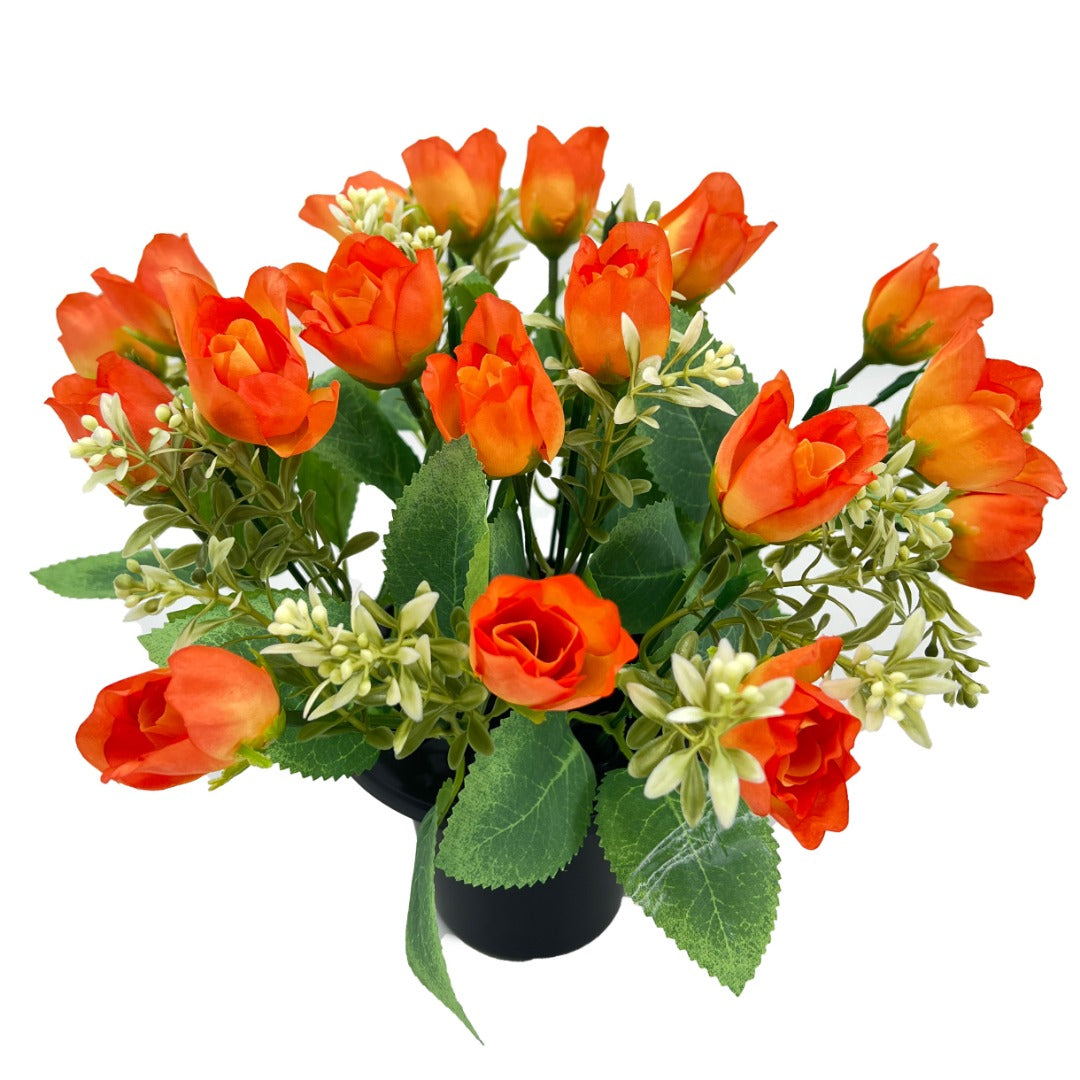 This beautifully crafted orange rose memorial flower arrangement offers a warm and meaningful tribute to celebrate remembrance, friendship, and enduring love. Featuring lifelike roses complemented by soft greenery and delicate accent florals, the arrangement conveys comfort, hope, and gentle remembrance.