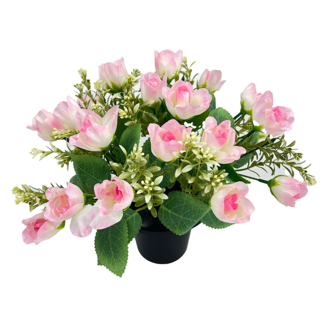 Presented in a classic black pot, this artificial memorial flower display measures 22cm in height and 24cm in diameter, making it an ideal size for gravesites, memorial plots, remembrance gardens, or indoor tribute spaces. Made from high-quality artificial materials, it provides lasting beauty throughout the seasons with no maintenance required.