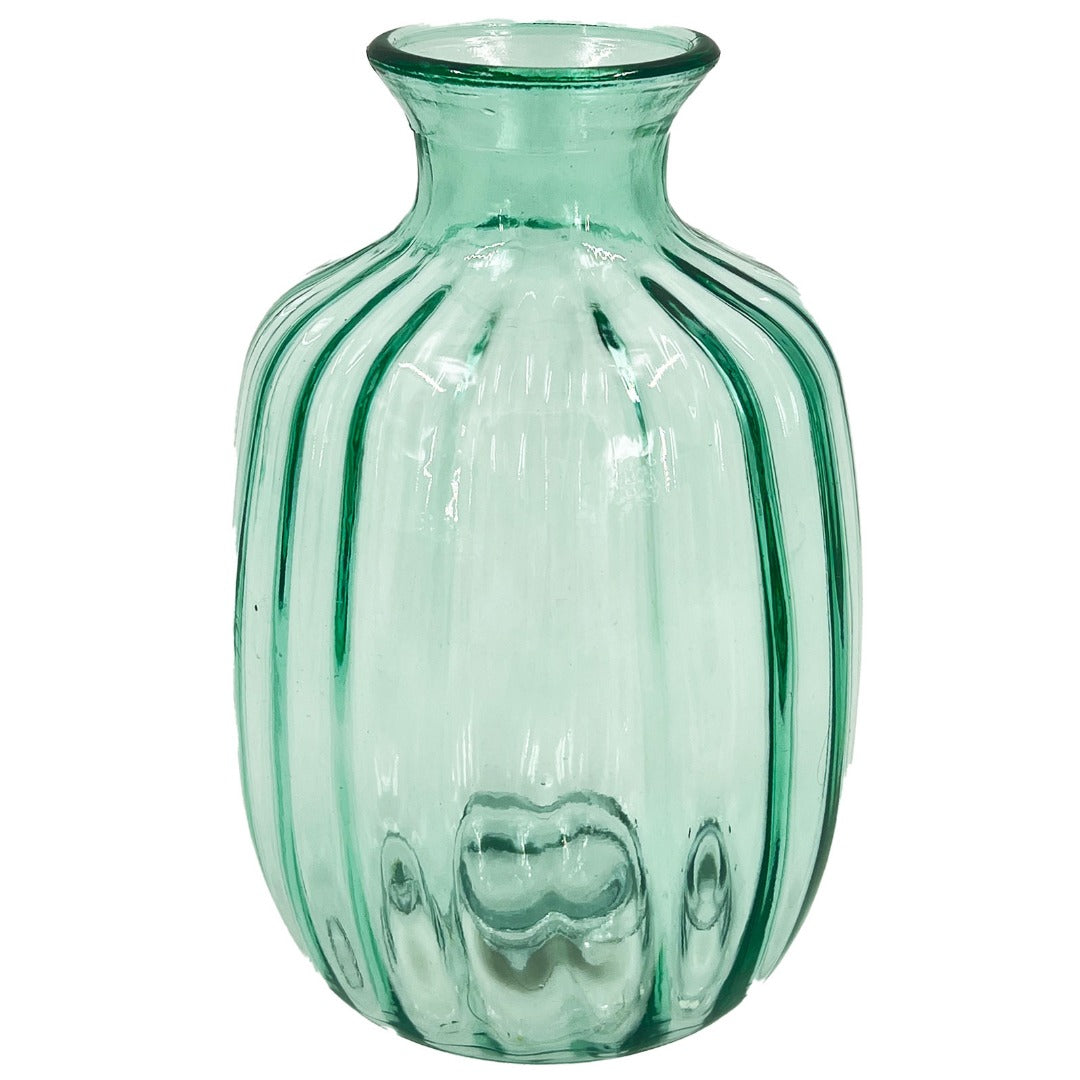 Elegant Ribbed Glass Vase – Green | 21 x 14 cm