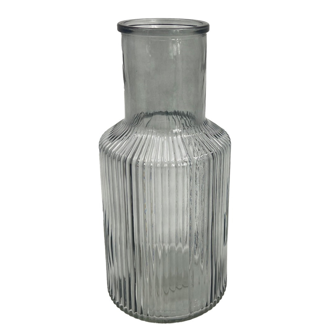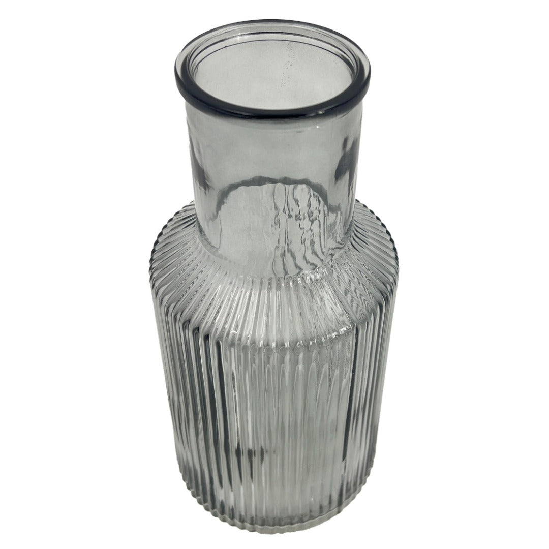 Tall Ribbed Glass Vase – Grey | 22 x 10 cm