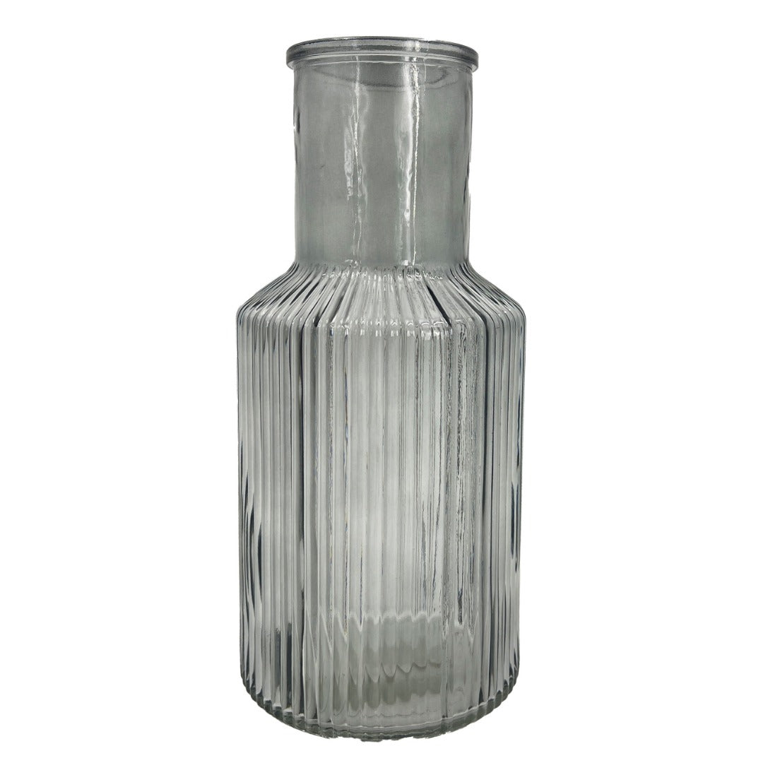 Bring effortless style to your space with this elegant tall ribbed glass vase. Crafted from high-quality glass with a subtle grey tint, this vase features a sleek cylindrical shape and vertical ribbing that adds texture, depth, and a refined modern feel.